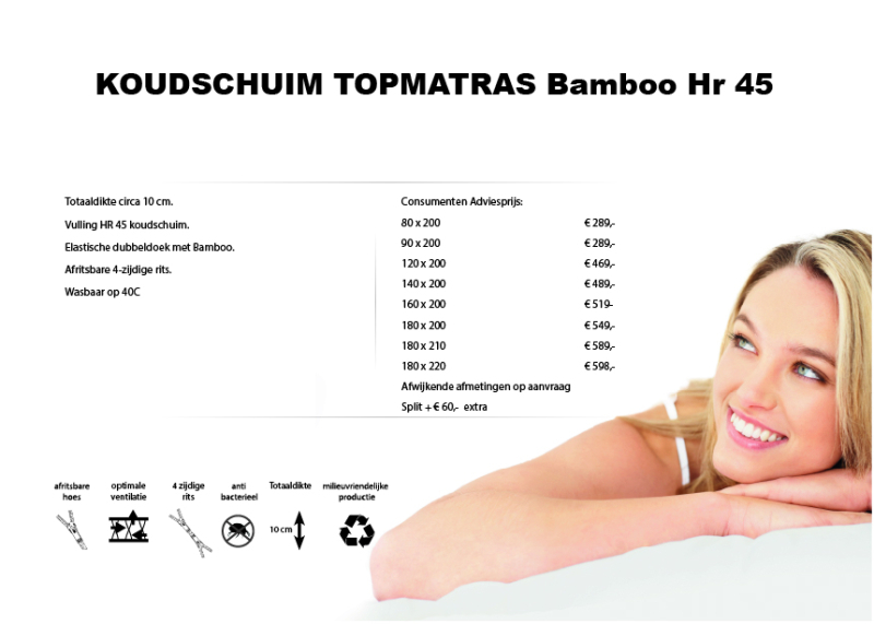 Koudschuim Topmatras BAMBOO HR 45 10 cm. dik
